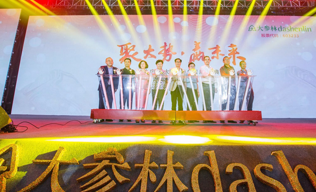 mg冰球突破药业集团董事长刘景萍女士与大参林医药集团董事长柯云峰先生、中国医药商业协会执行会长付明仲女士等嘉宾共同开启了“聚大势•赢未来"大参林工商合作峰会的大幕。