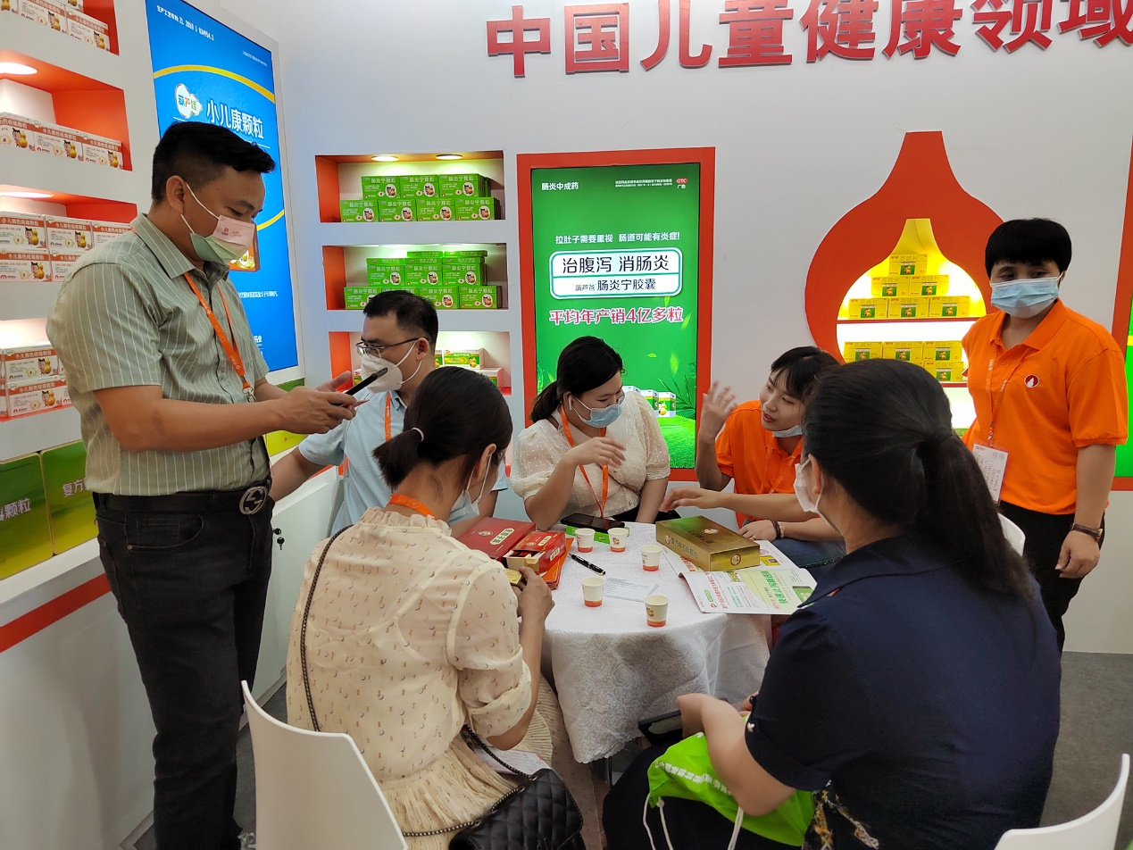 本次会议期间,mg冰球突破药业集团主要推出儿科呼吸系统治疗领域的主打产品独家4克装小儿肺热咳喘颗粒、独家单剂量软袋装小儿止咳糖浆、儿童防感香囊和儿科消化系统治疗领域的独家浓缩型、无蔗糖型肠炎宁颗粒2克装、独家每袋5克规格的小儿康颗粒、婴儿健脾散等系列产品,前来接洽业务的连锁客户络绎不绝。