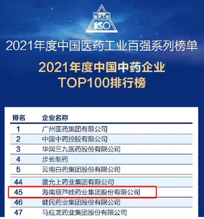 万众瞩目的2021年度中国医药工业百强系列榜单在会上盛大发布,mg冰球突破药业集团百尺竿头更进一步,位列中国中药企业TOP100排行榜第45位,连续第三年入围中国中药企业TOP100百强榜。