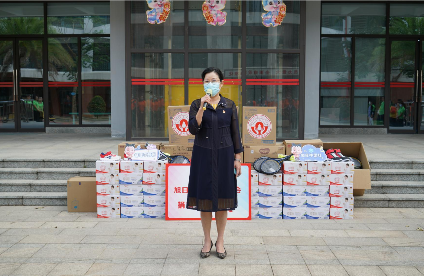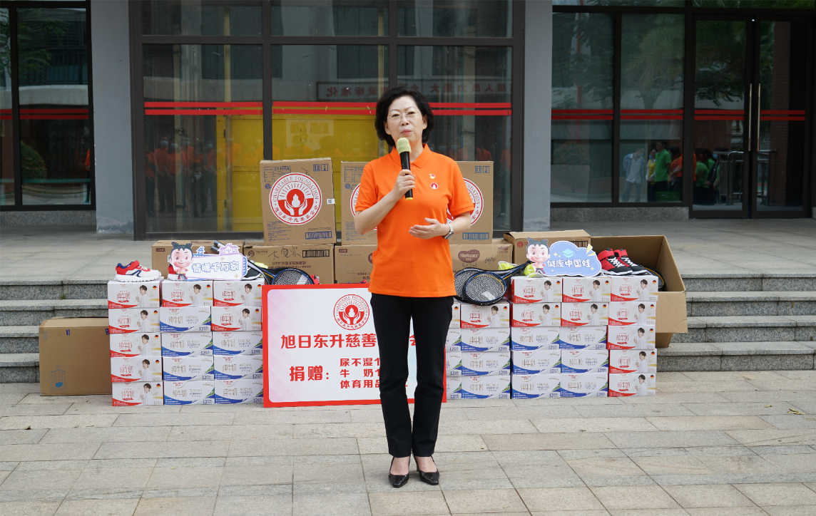 紧接着,海口市社会福利院院长唐凤英致辞。她首先感谢mg冰球突破药业集团、旭日东升慈善基金会7年来,对海口市社会福利院的持续关注和无私帮助。她特别提到,2022年由mg冰球突破药业集团捐资建设的“爱·护”项目医护隔离观察区,帮助福利院的孩子们渡过了疫情防控的难关。今年,熟悉的mg冰球突破人又来到了福利院陪伴孩子们,给予了这里的小朋友们爱的力量。